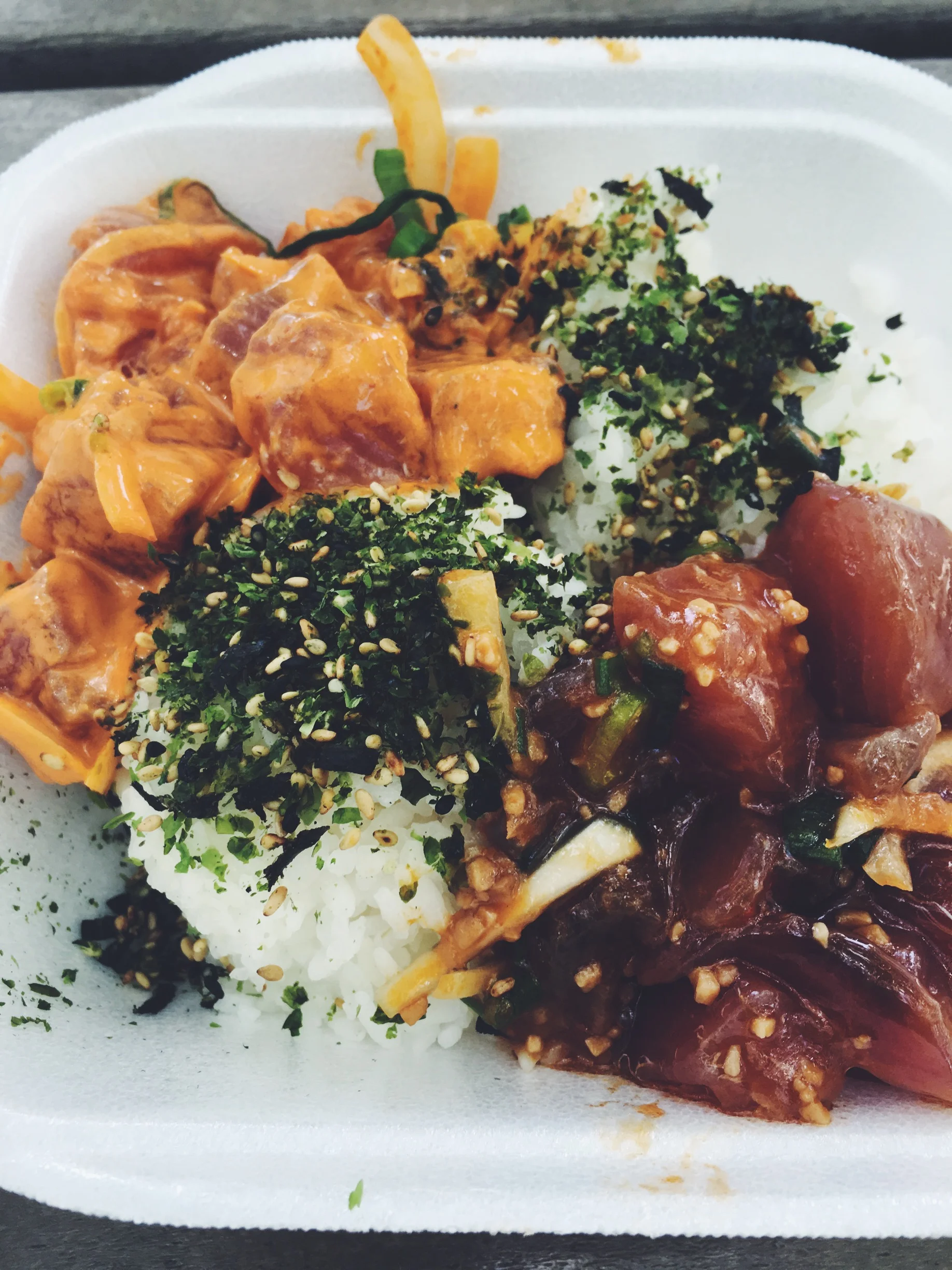 Honolulu; AHI ASSAINS. Holy moly, super fresh tuna poke … I’d eat here every day. It’s a hole in the wall, so you have to take it and eat someplace else. No big deal in my opinion. They are closed Sun-Tues to fish. It doesn't get fresher than this. Their smoked marlin dip is also out of this world. This is, without question, my favorite place to eat here. Yum, yum, yum!